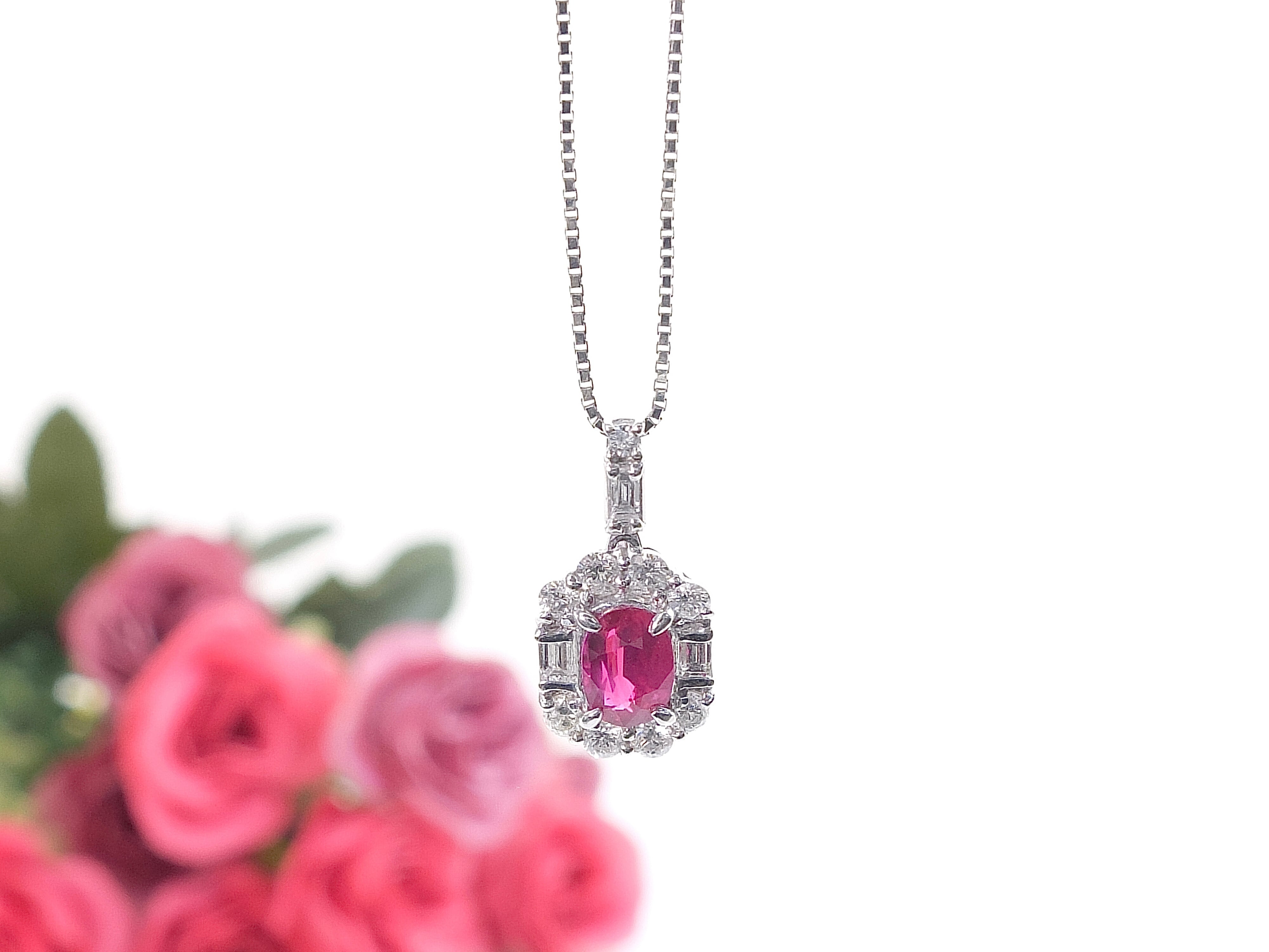 ルビーの中で理想のカラーとされ価値の高いピジョンブラッドを贅沢に0.63カラットセッティング。