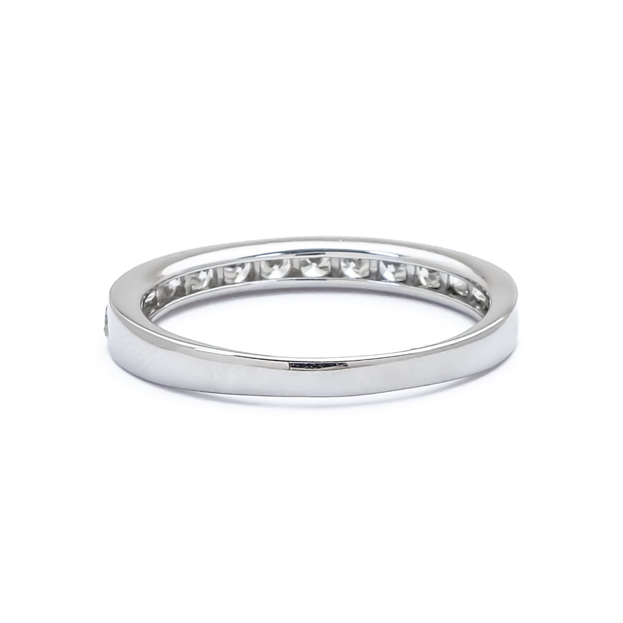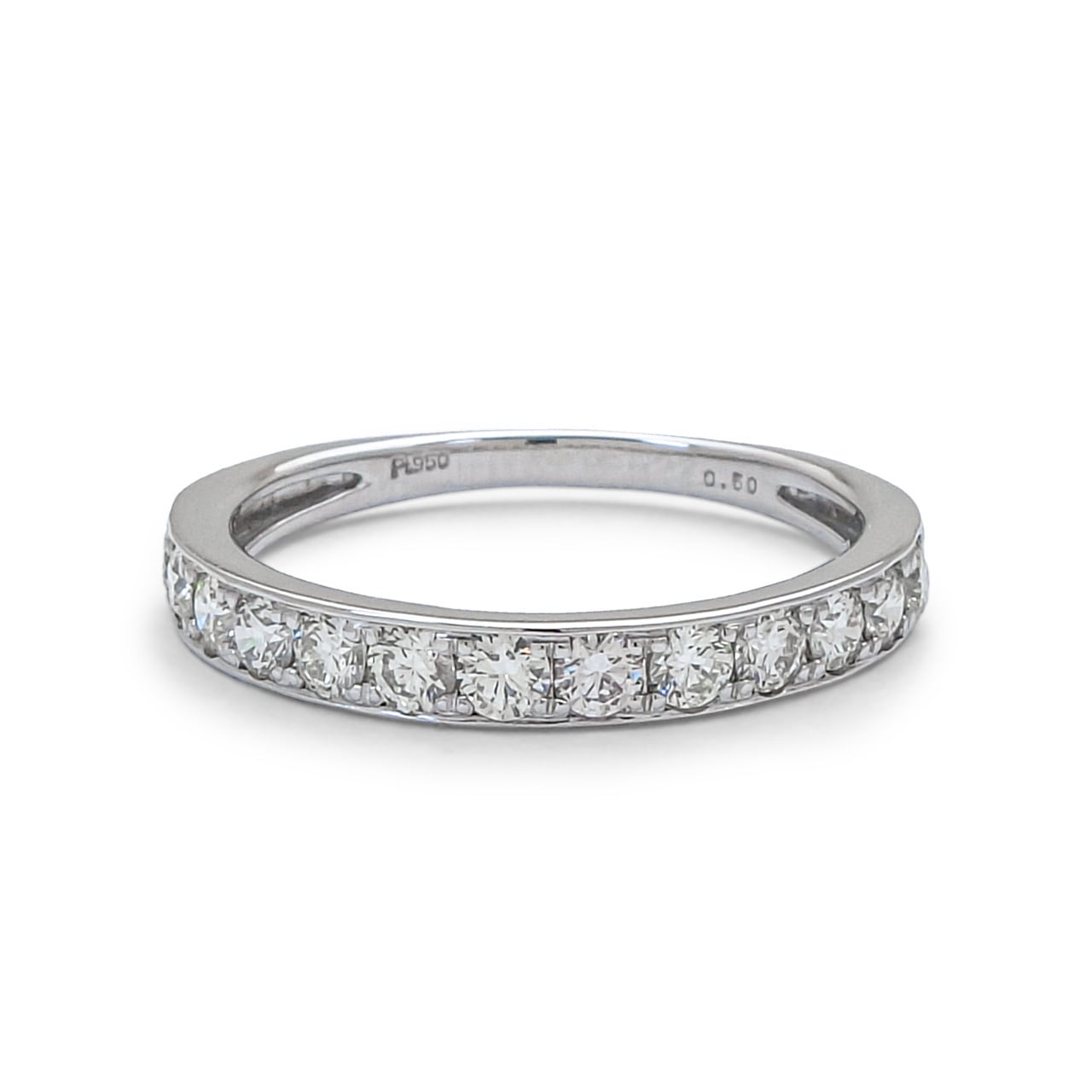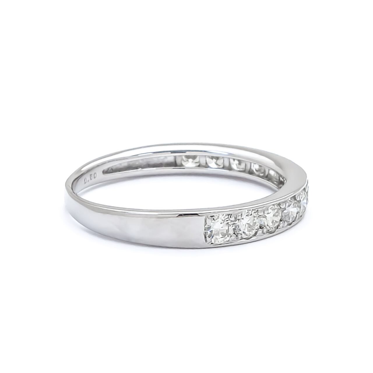 なめらかな着け心地と引っ掛かりの少ない丸爪で留めてお作りするハーフエタニティリング。