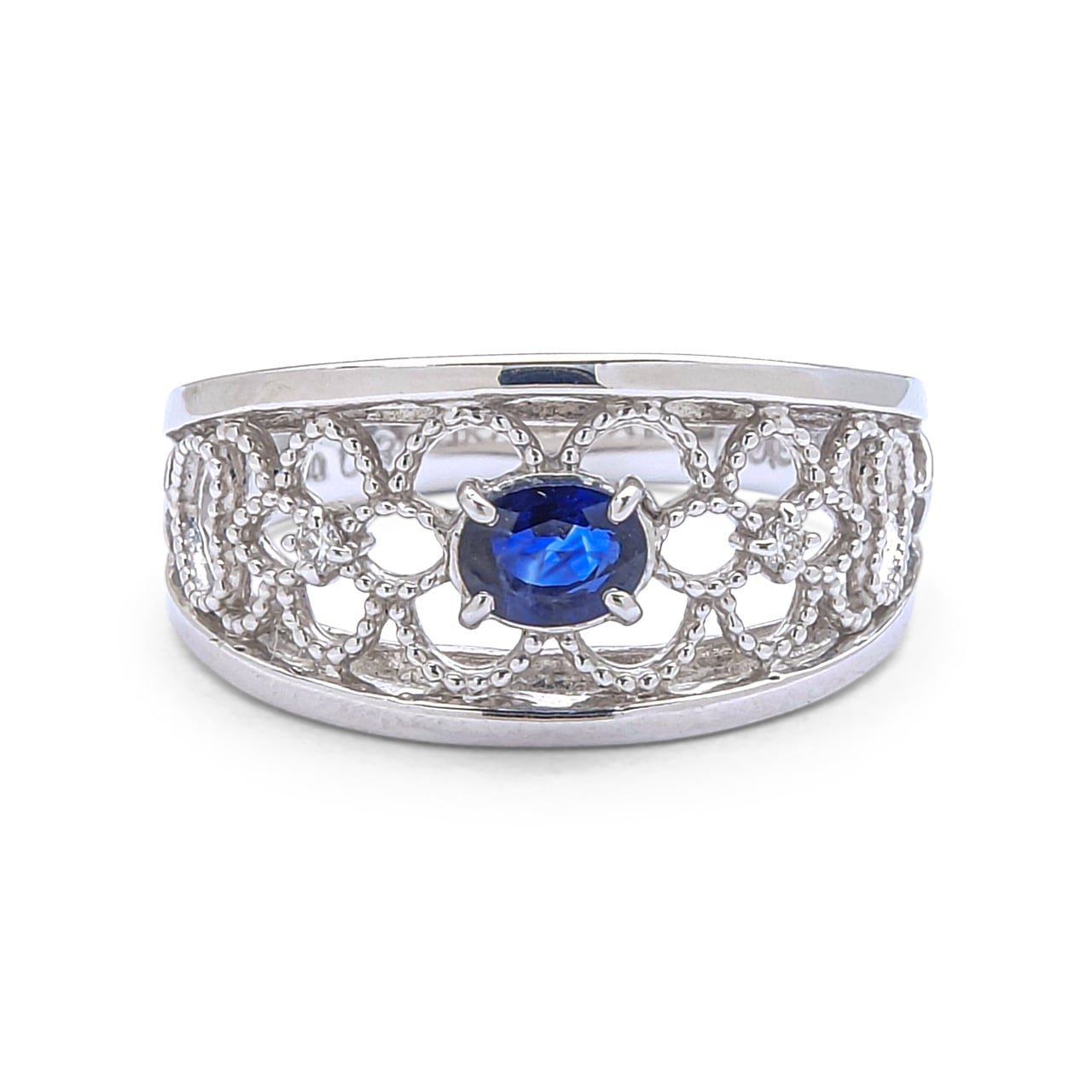 サファイア中で価値の高い、光沢のある鮮やかな青色のコーンフラワーブルーを0.31カラットセッティング。