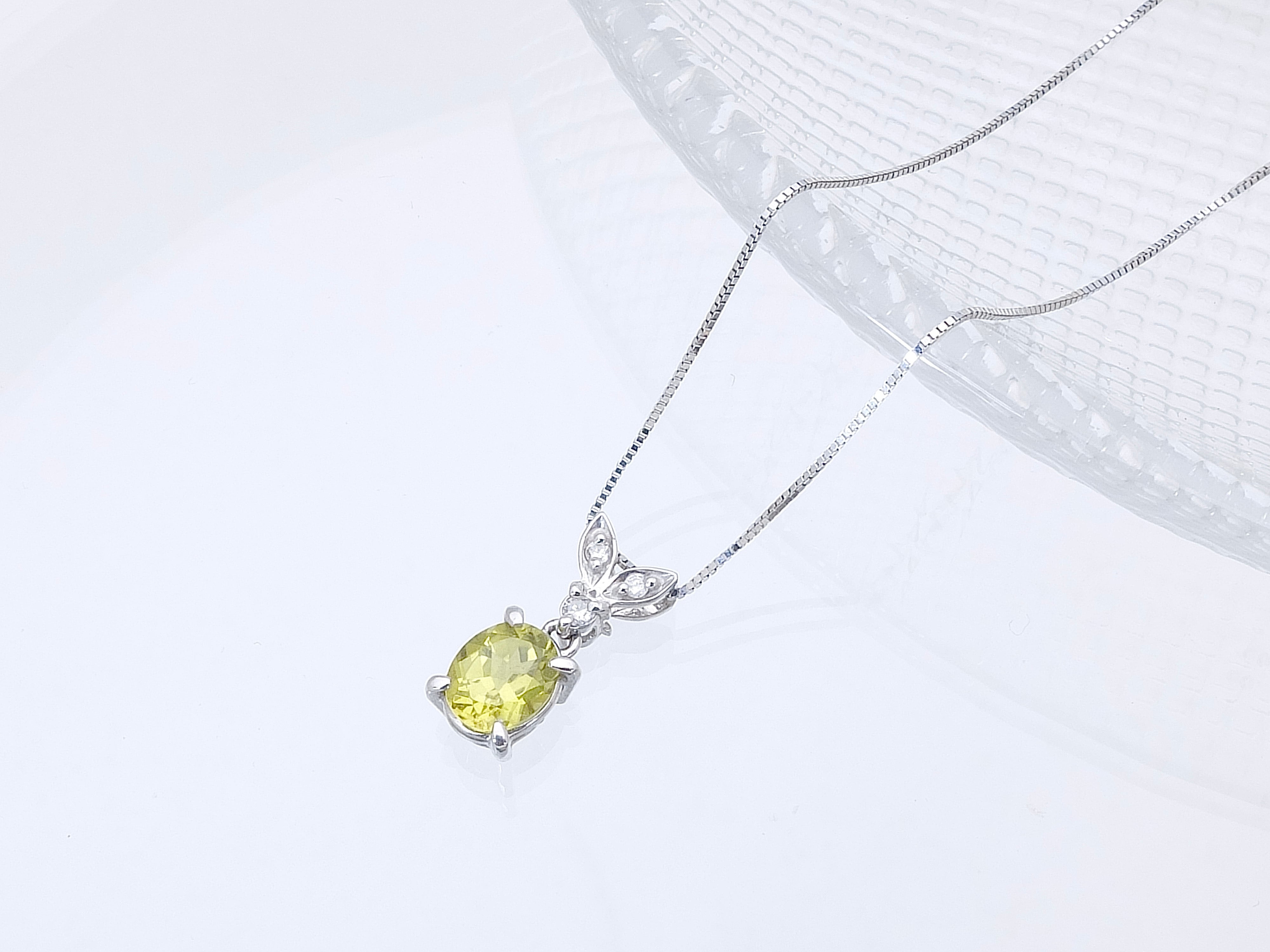 透明度が高く、緑っぽさを感じる鮮やかなイエローカラーのカナリートルマリンを0.68カラットセッティング。