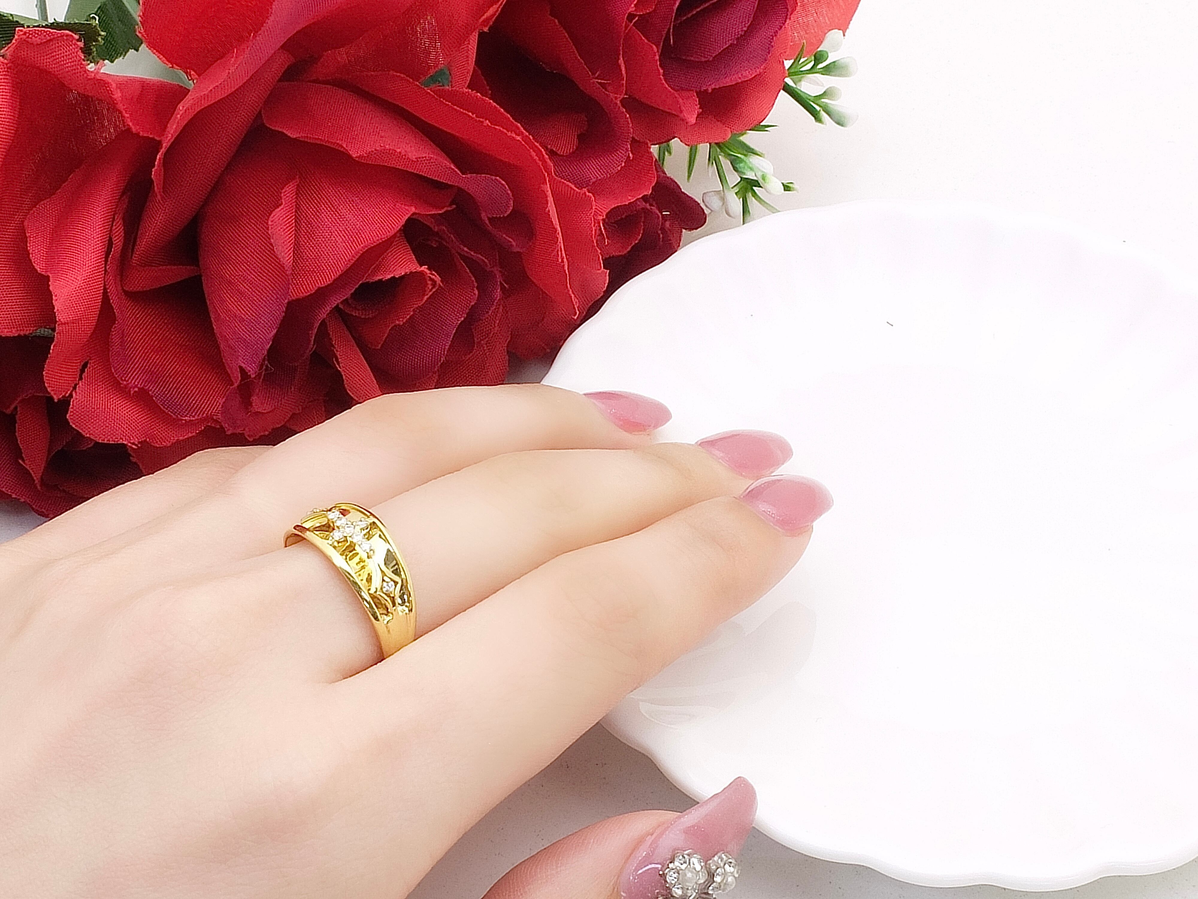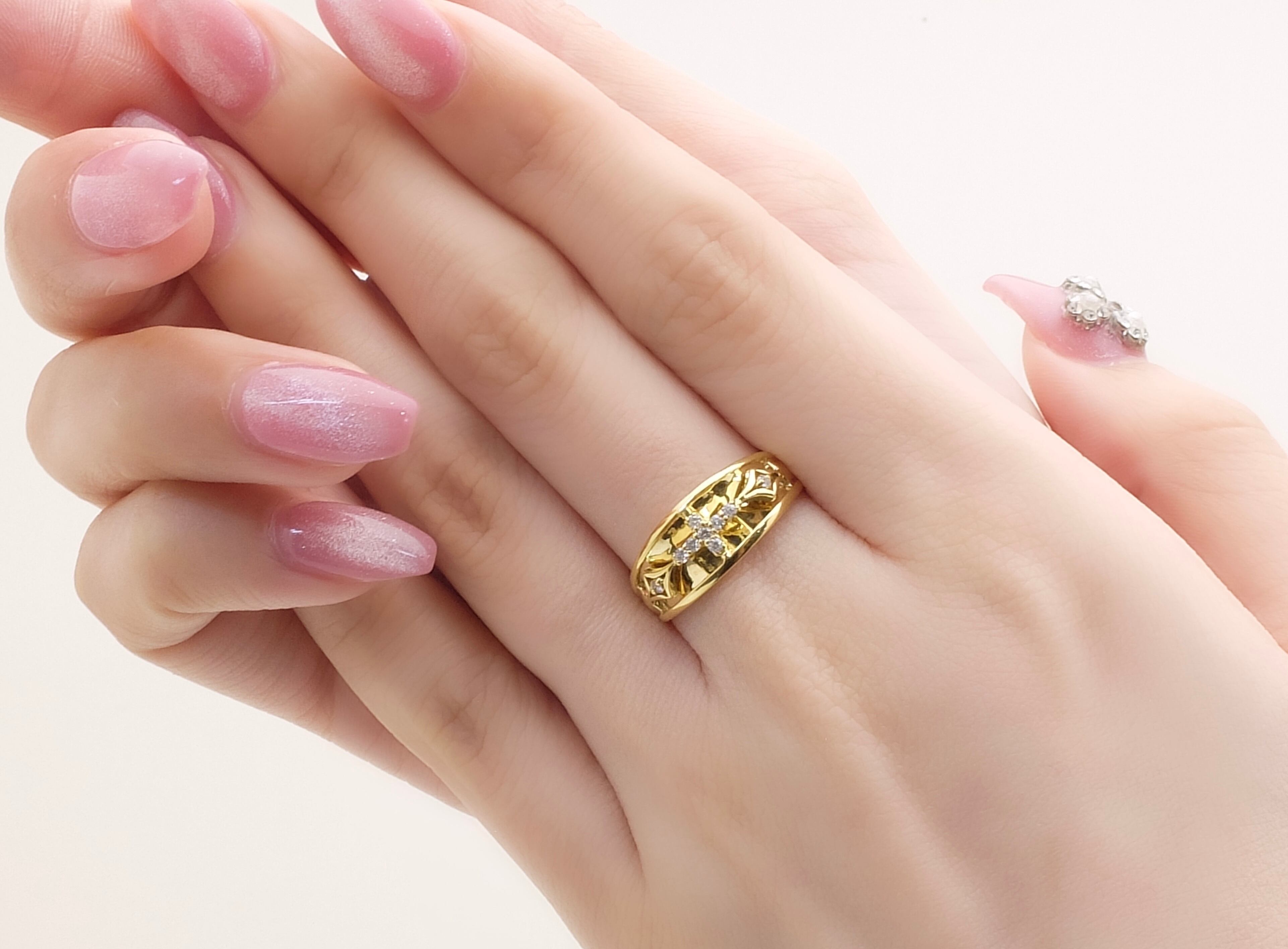 内包物が少なく良質なH&C(ハートアンドキューピット)のダイヤを0.08カラットセッティング。
