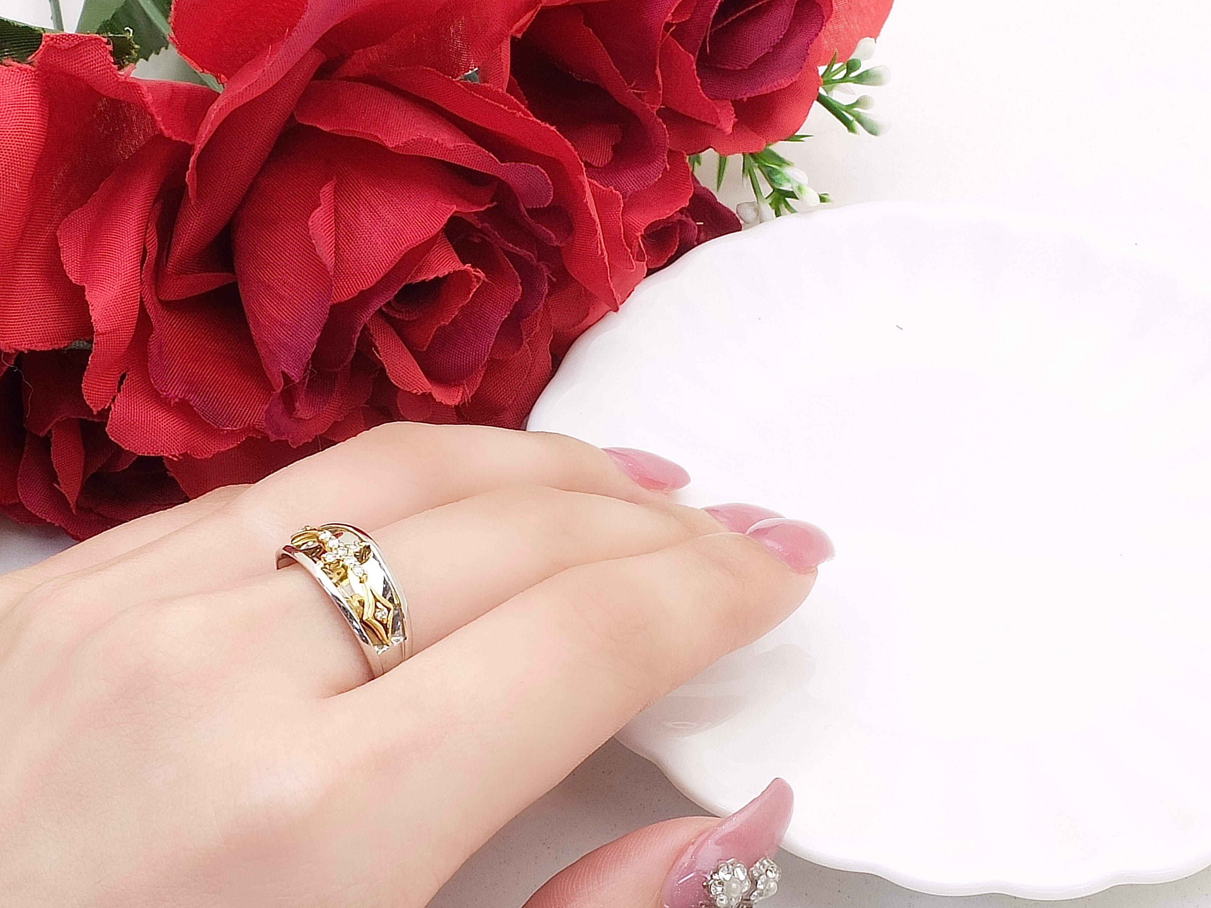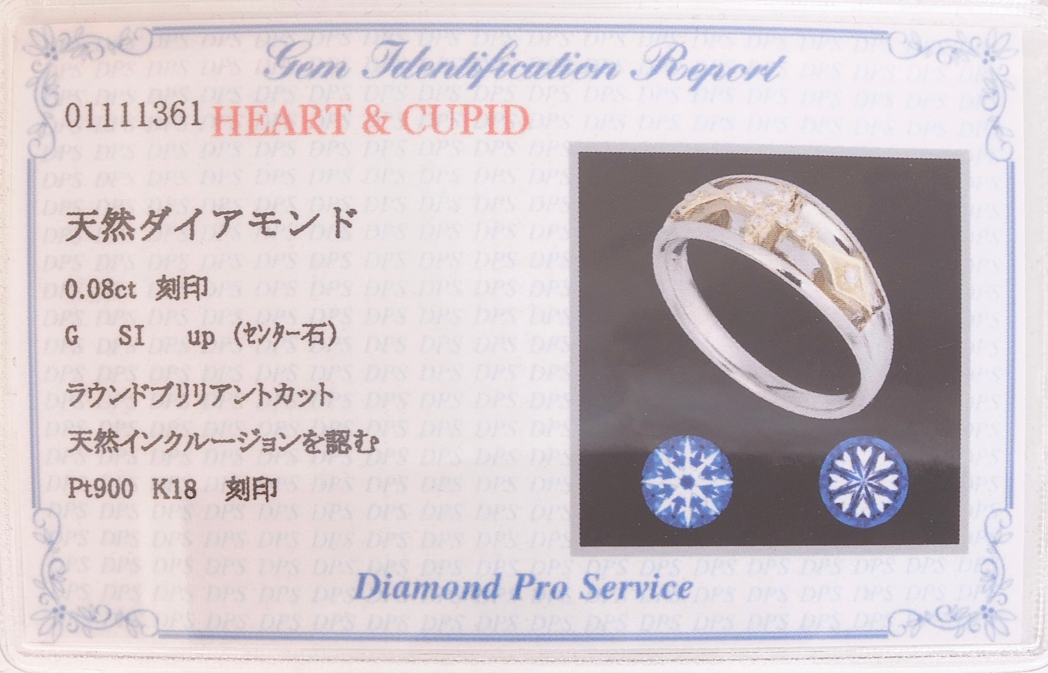 内包物が少なく良質なH&C(ハートアンドキューピット)のダイヤを0.08カラットセッティング。