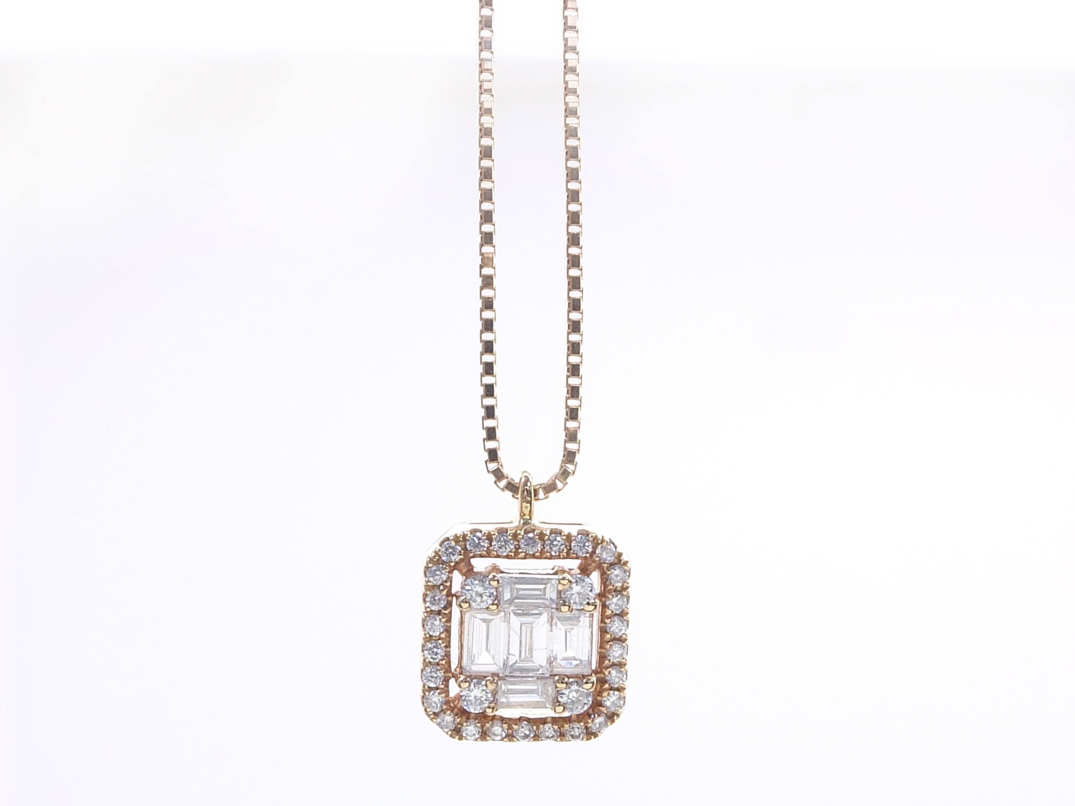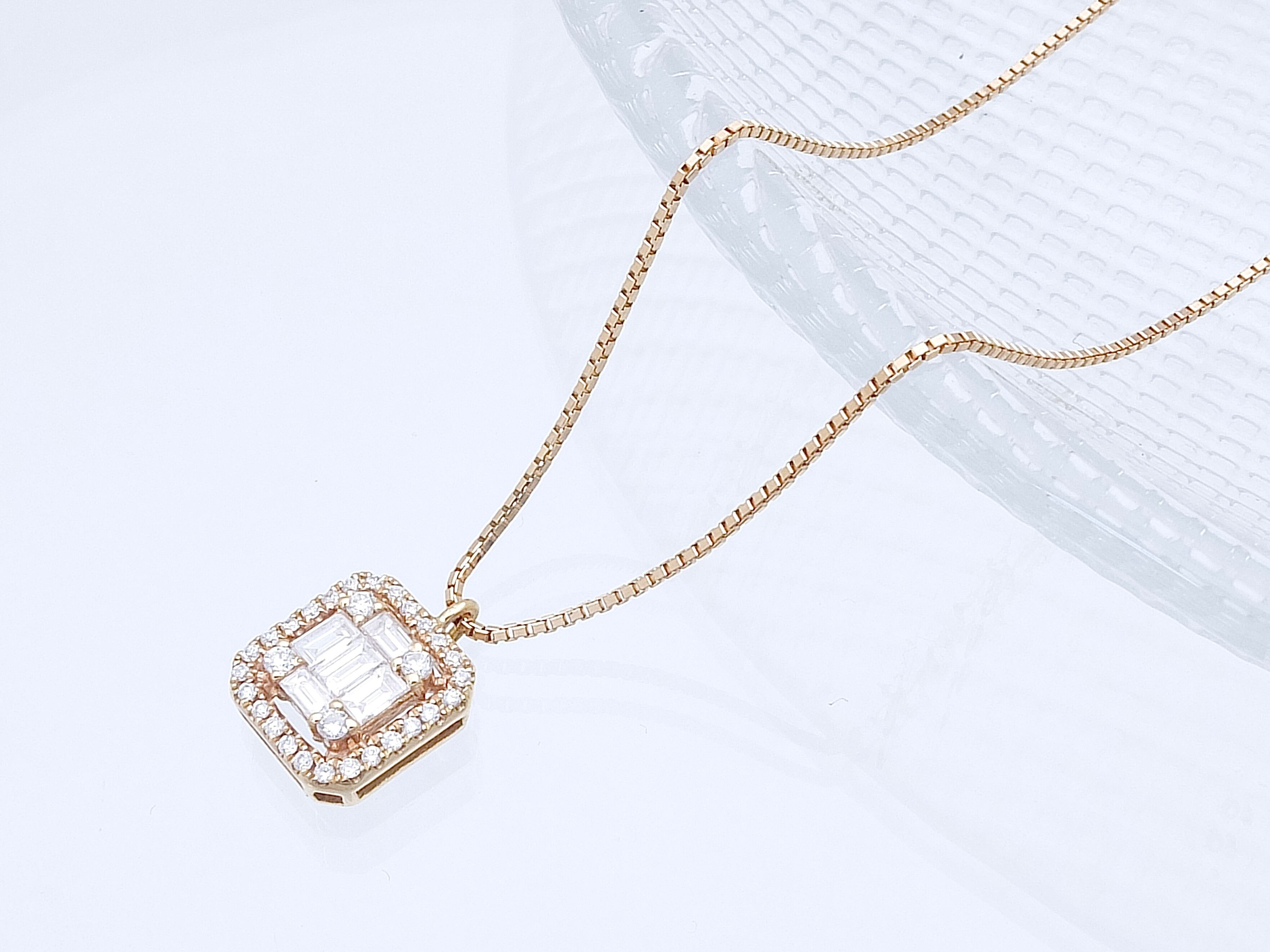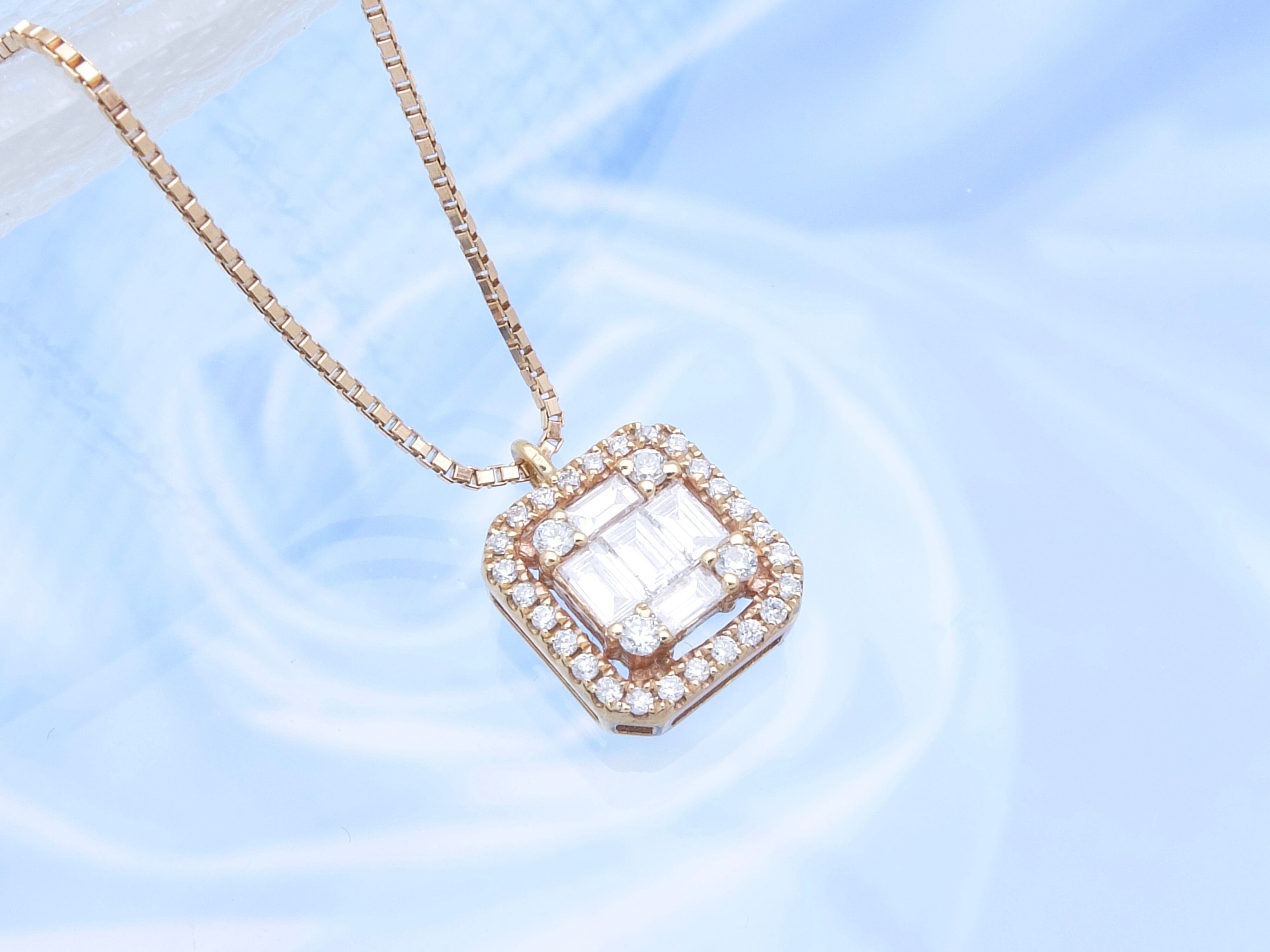 テリの良いバケットカットダイヤモンドを0.23カラットセッティング。