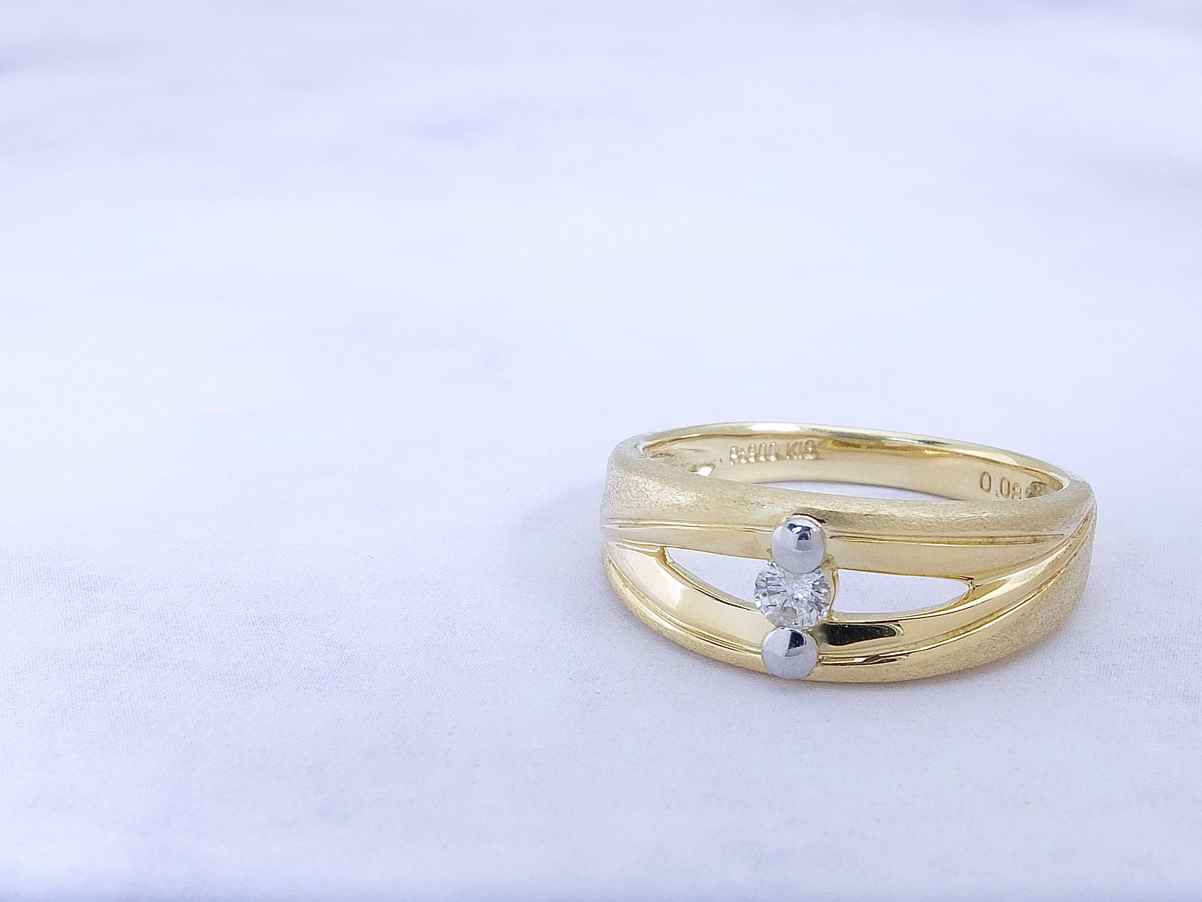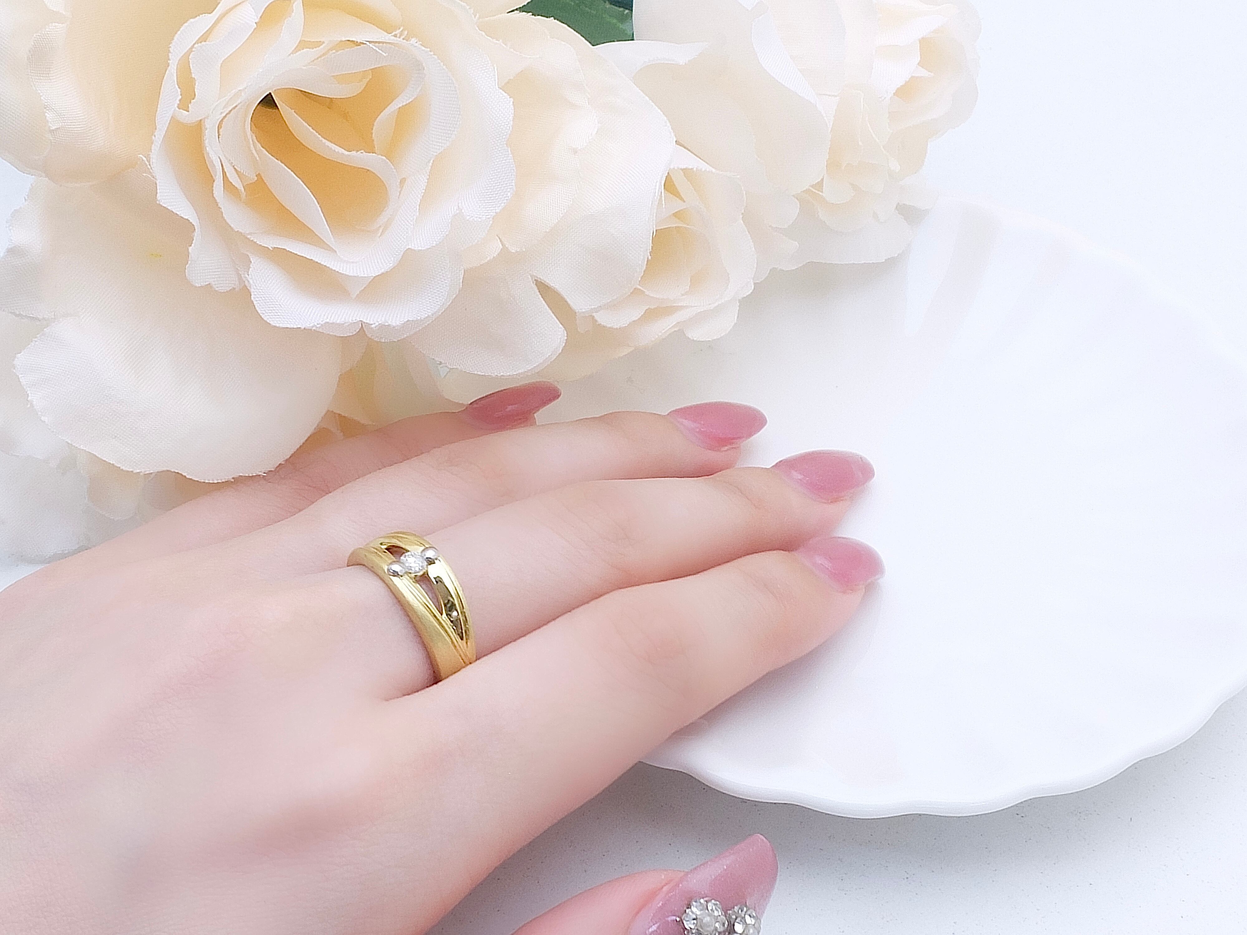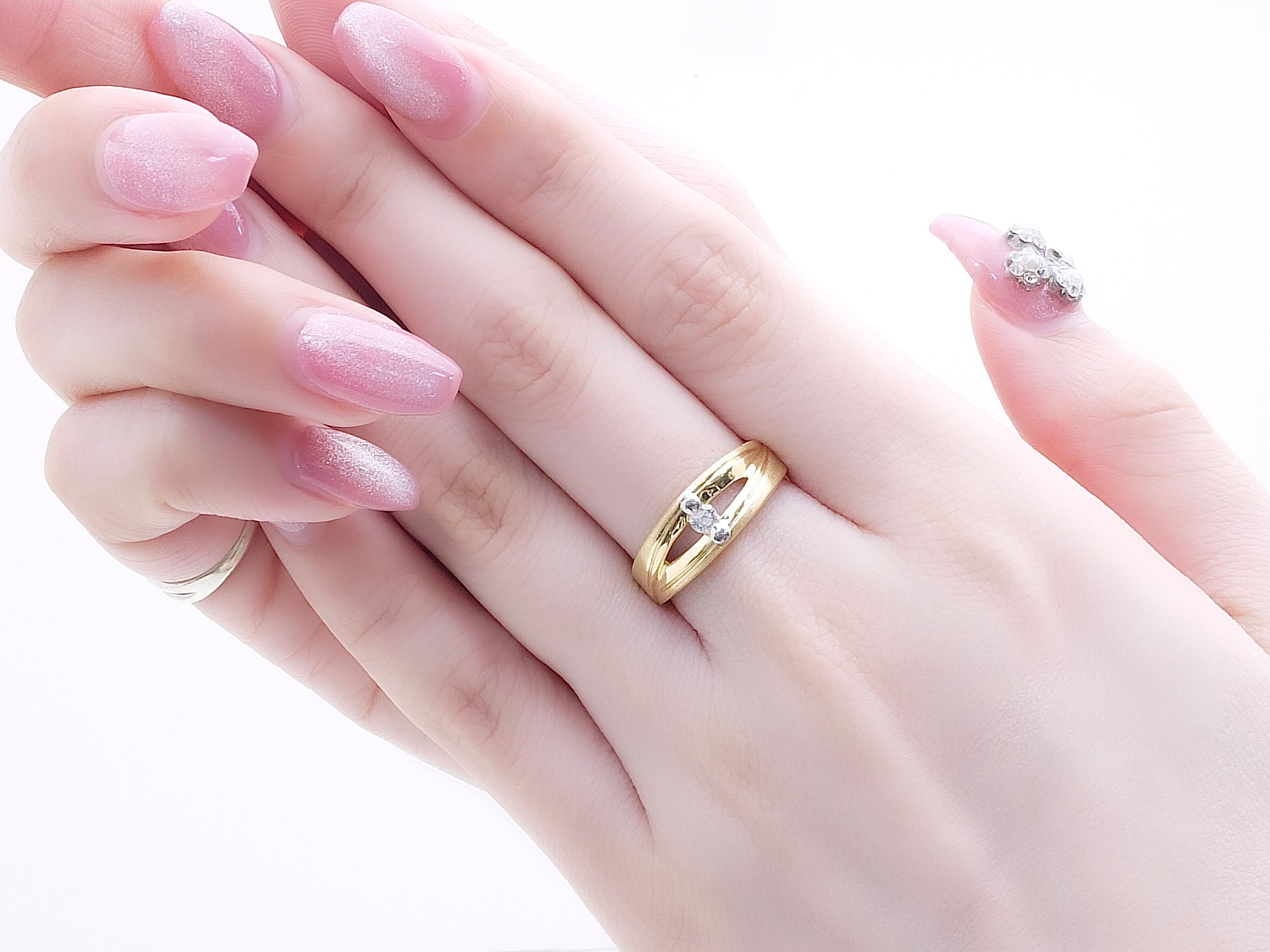 肉眼でも僅かに確認できるインクルージョンはありますが、テリの良いダイヤモンド0.08カラットセッティング。