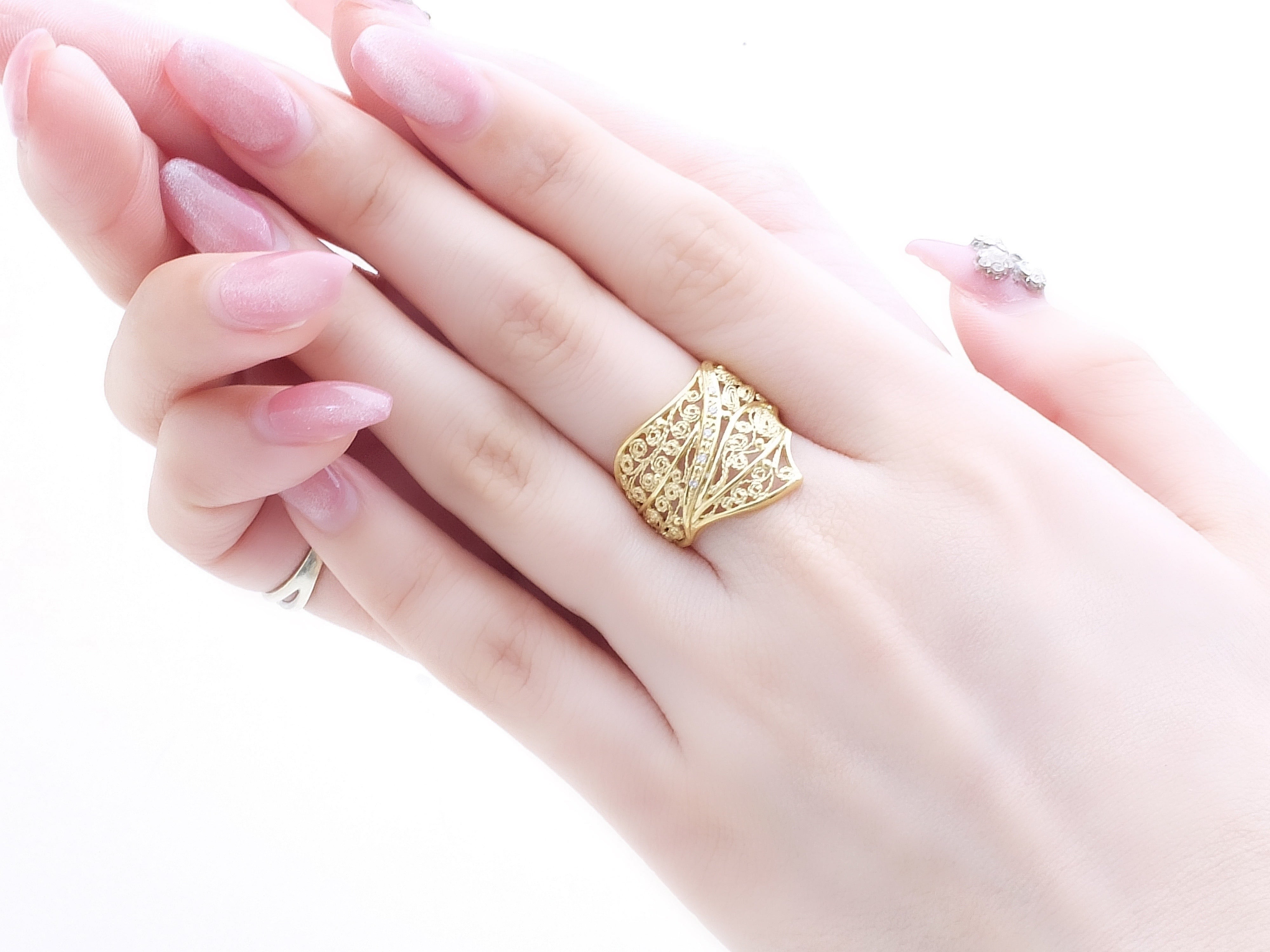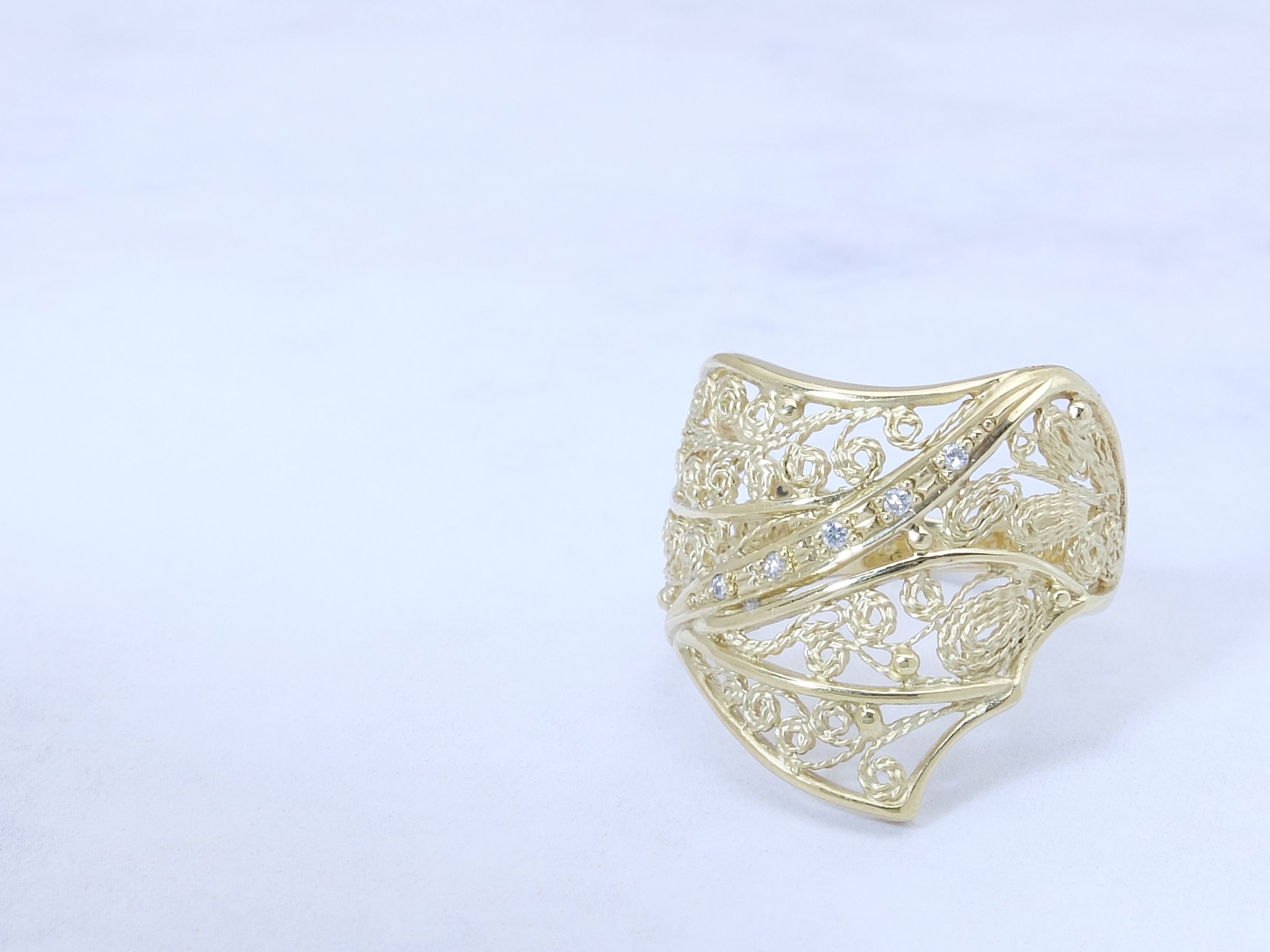 流れるようなラインに沿ってダイヤモンドを配し、上品に仕上げました。